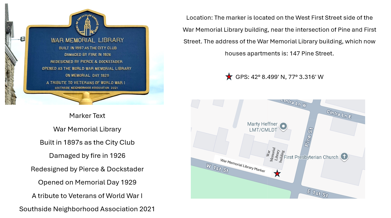 3. The history of public libraries in Corning: The first public library in Corning, was a subscription library that was, according to the book, A History of the public libraries served by the Southern Tier Library System, was organized on February 25, 1873; more research should be done & compiling a history of the public libraries in Corning was agreed to be a good idea.